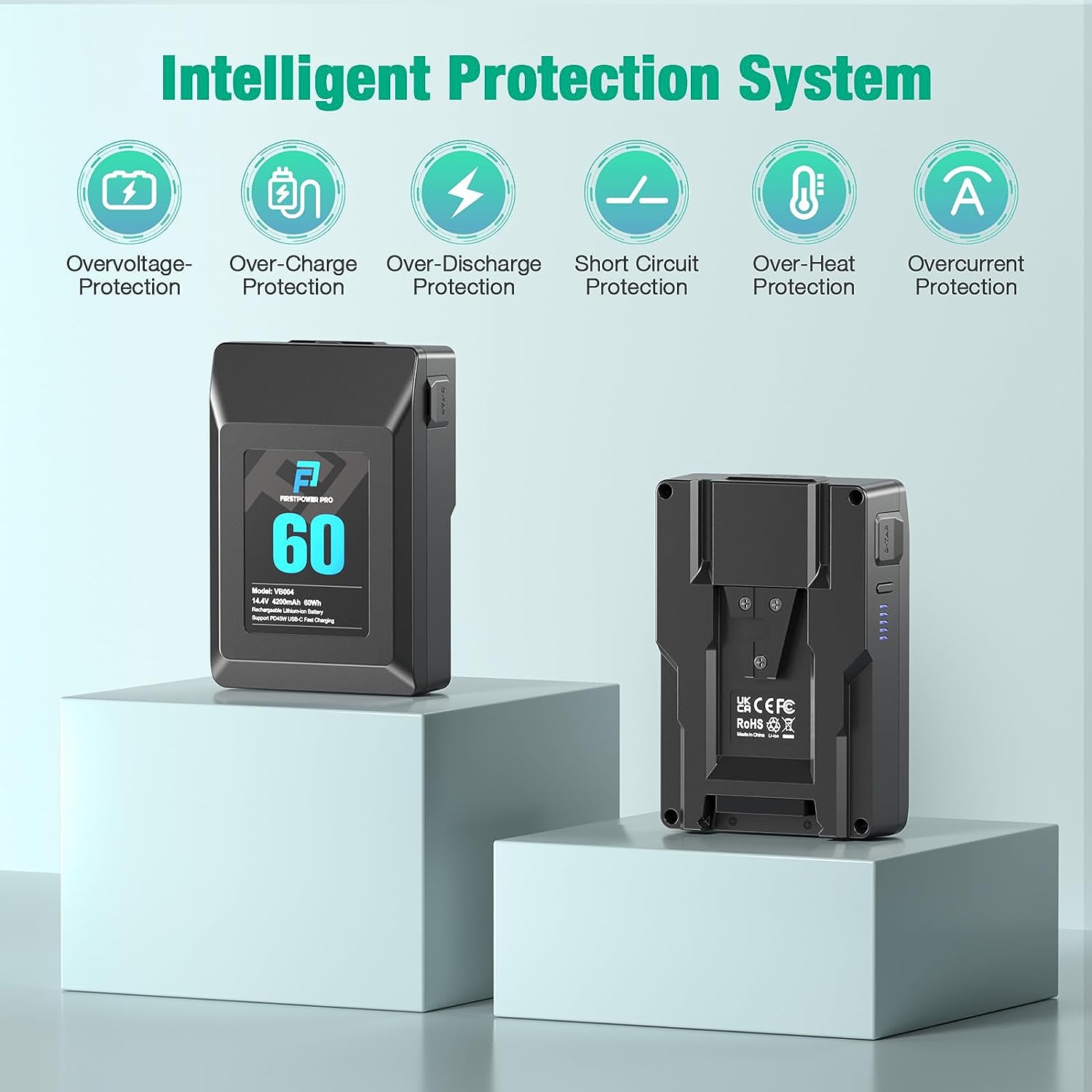 FirstPower 60Wh V Mount Battery, Support PD 45W USB-C Bi-direction Fast Charging